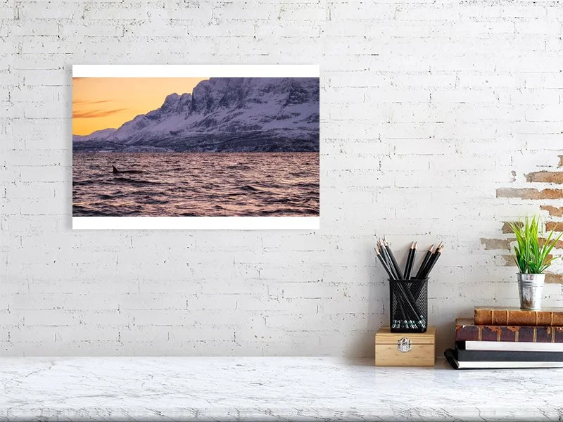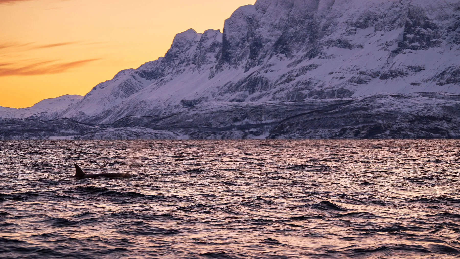 When the sun doesn’t rise above the horizon during the winter in northern Norway, the sky takes full advantage of the situation, and gives off incredible golden hour hues all day long, intensifying in the afternoon just before the light starts to fade. Orcas surfacing for a breath in front of the snow covered mountains create a magical scene which can only be witnessed in this wonderfully remote location.